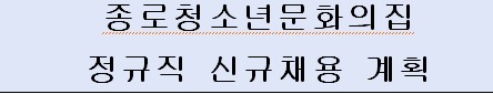 ÀÌ¿¡, Á¾·Îû¼Ò³â¹®ÈÀÇÁýÀÇ ºñÀüÀ» °øÀ¯Çϰí û¼Ò³â Ȱµ¿ ÇÁ·Î±×·¥ ±âȹ ¹× ¿î¿µ¿¡ ¶Ù¾î³ Àü¹®¼º°ú ¿Á¤À» °¡Áø Á¤±ÔÁ÷ ½Å±Ô Á÷¿øÀ» °ø°³ ä¿ëÇϰíÀÚ ÇÕ´Ï´Ù. û¼Ò³âµé°ú ÇÔ²² ¼ºÀåÇÏ¸ç °¡Ä¡ ÀÖ´Â º¯È¸¦ ¸¸µé¾î ³ª°¥ ÀÇÁö°¡ ÀÖ´Â À¯´ÉÇÑ ÀÎÀçµéÀÇ ¸¹Àº °ü½É°ú Áö¿øÀ» ±â´ëÇÕ´Ï´Ù.