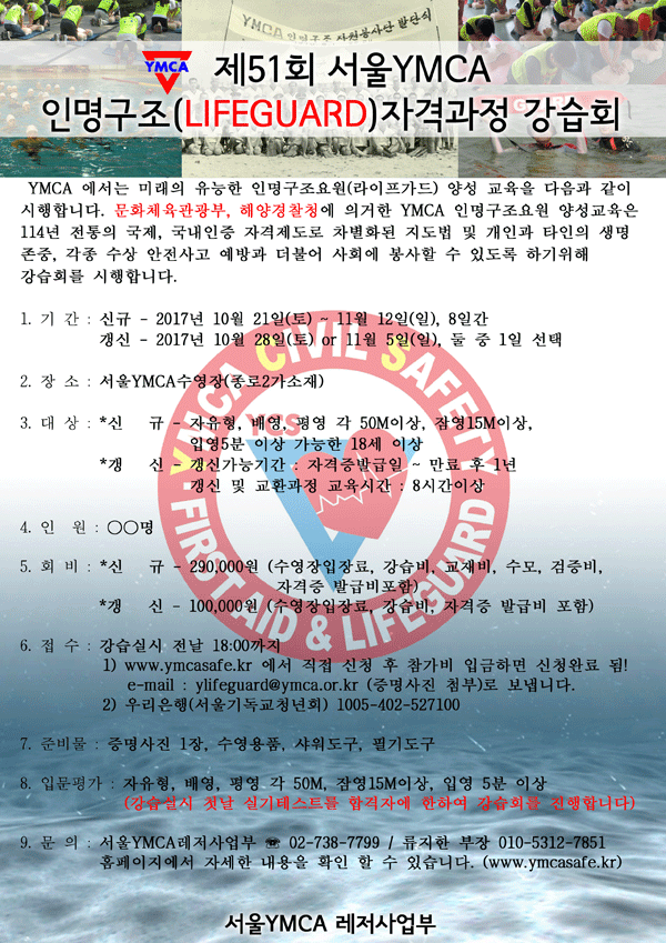 Á¦ 51ȸ ¼¿ïYMCA ÀÎ¸í±¸Á¶¿ä¿ø(¶óÀÌÇÁ°¡µå)ÀڰݰúÁ¤..